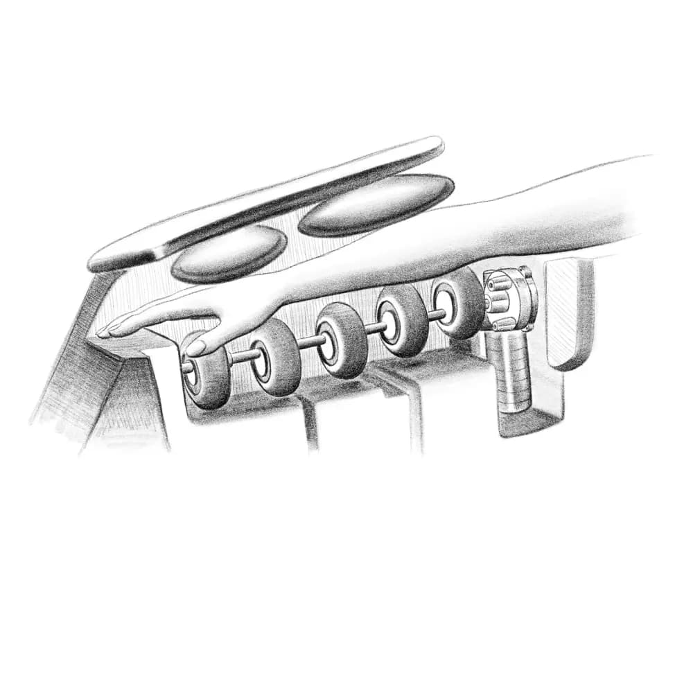 The arms are massaged by a simultaneous compression of the airbags. In parallel, the WAVE ARRAYS roller system performs circular and oscillating movements on the arms. CIRRUS is unique for arm massage.